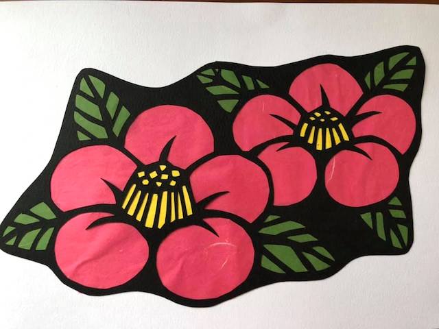 先生が「お土産に」と、色の入っていない切り絵を下さいました。